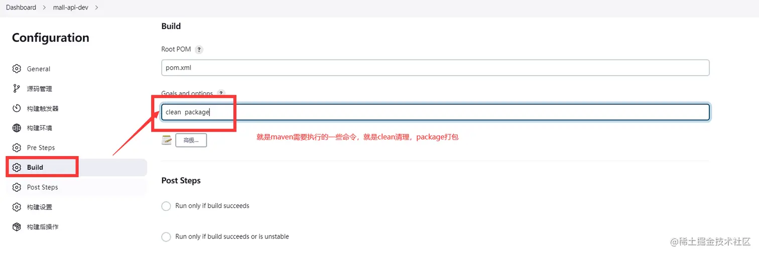 maven的项目构建环境,Pre Steps不用选择,跳过