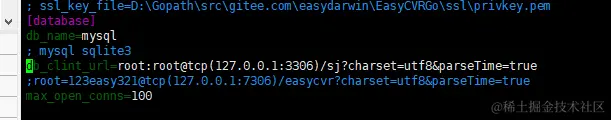 3)修改easycvr.ini文件中的数据库字段,配置正确的数据库链接,如图: