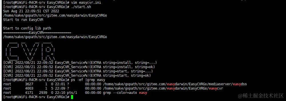 有用户反馈,EasyCVR安装显示成功后,系统并无EasyCVR相关的进程,于是请求我们协助排查。