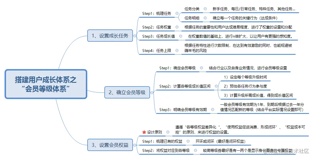 其实主要概括下来就是3个步骤:设置成长任务 → 确立会员等级 → 设置会员权益。