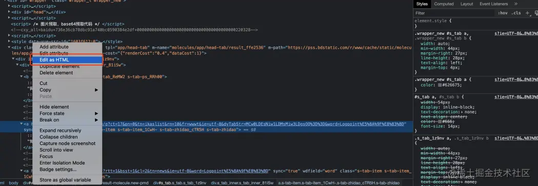 八、控制台直接修改html