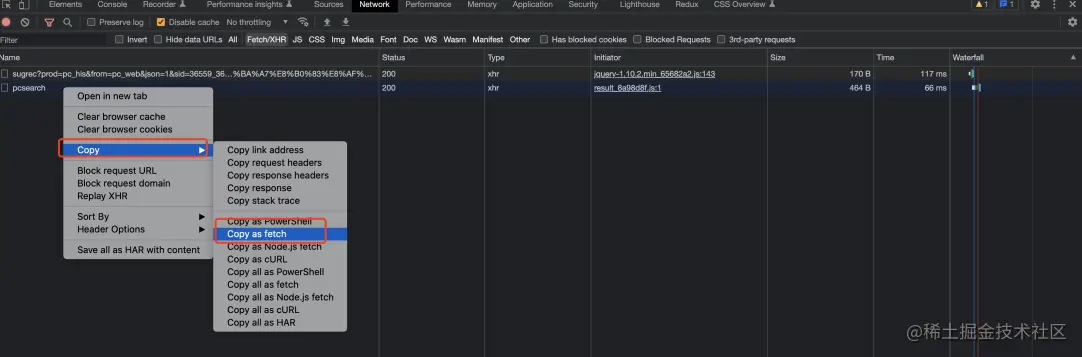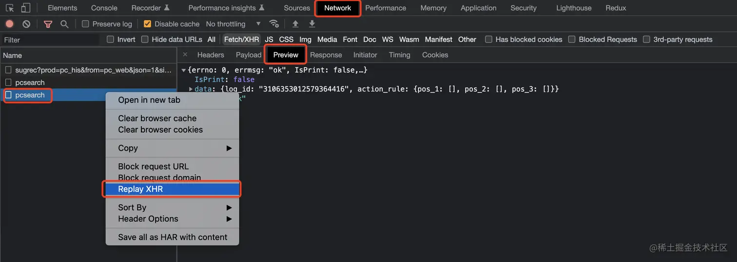 Fetch/XHR - 点击选中需要重新发送的请求