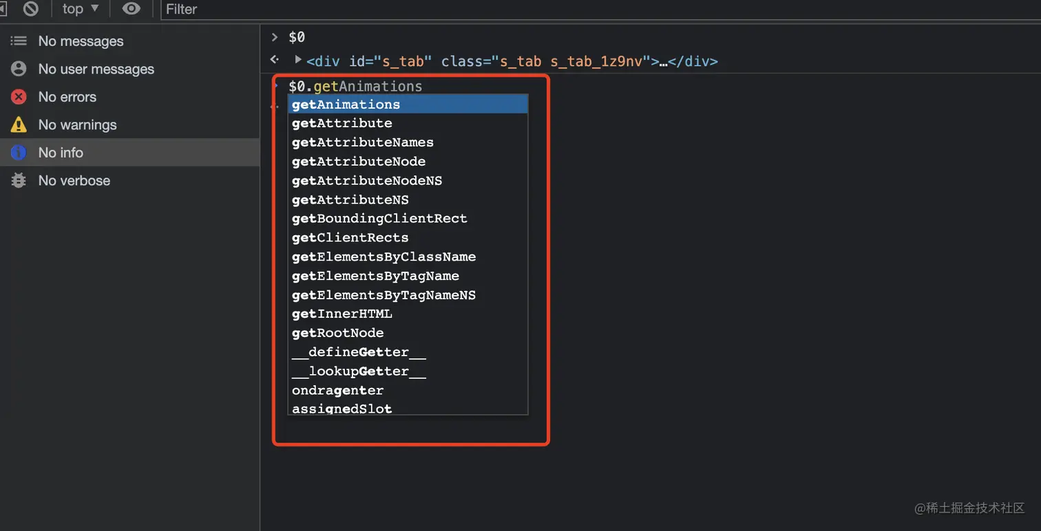 调试页面的时候通过Element面板选中元素后,想通过JS来获取一些属性,比如宽、高、滚动条、位置等等怎么办呢?