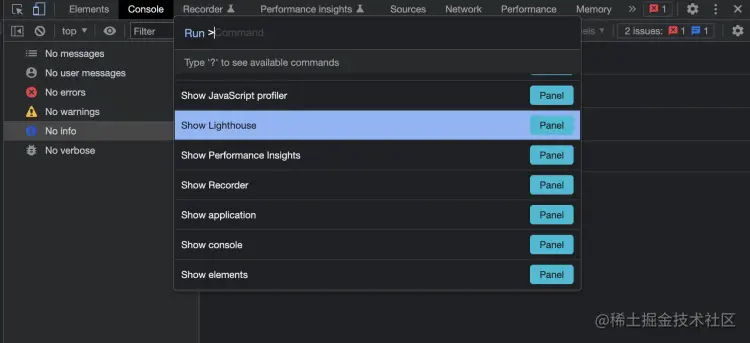 假如我们当前在Network然后想要快速打开到性能面板或者想要快速切换浏览器主题