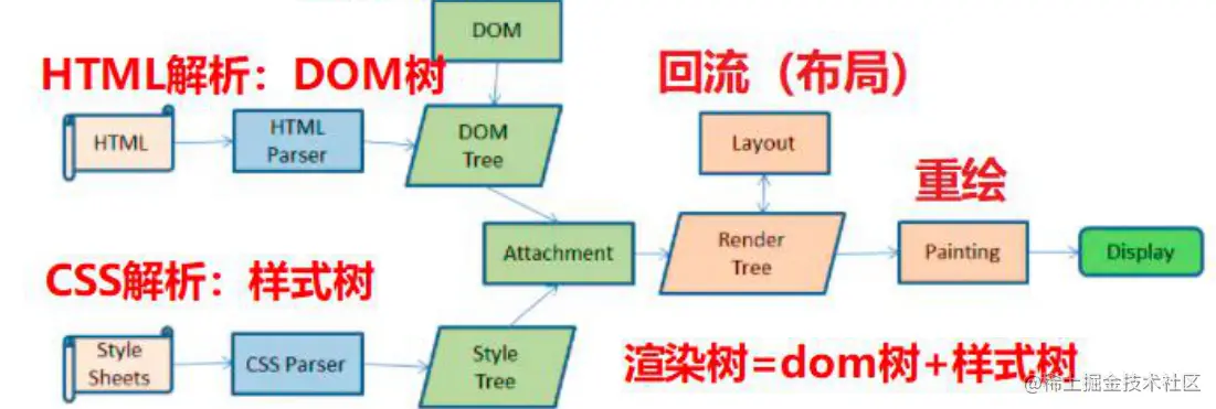 - 服务器响应数据之后,渲染引擎开始渲染页面 4.1 解析html生成:dom树 4.2 解析css生成:样式树 4.3 dom树与样式树 合并得到渲染树 4.4 呈现页面