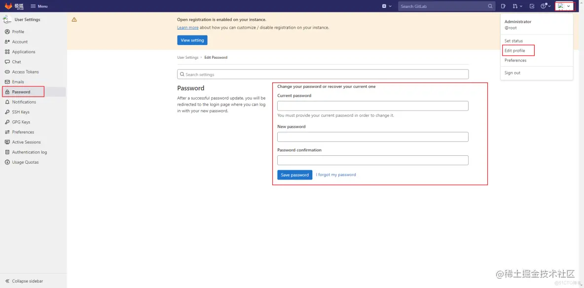GitLab超级管理账户为 root ****,然后通过cat /etc/gitlab/initial_root_password查看初始登录密码,方便登录Web界面
