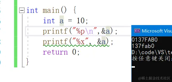 %p 打印地址 & 叫做取地址符 可以取出变量的地址