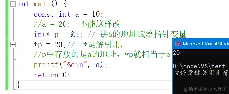 *p = 20;// *是解引用,