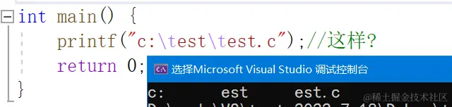 printf("c:\test\test.c");//这样