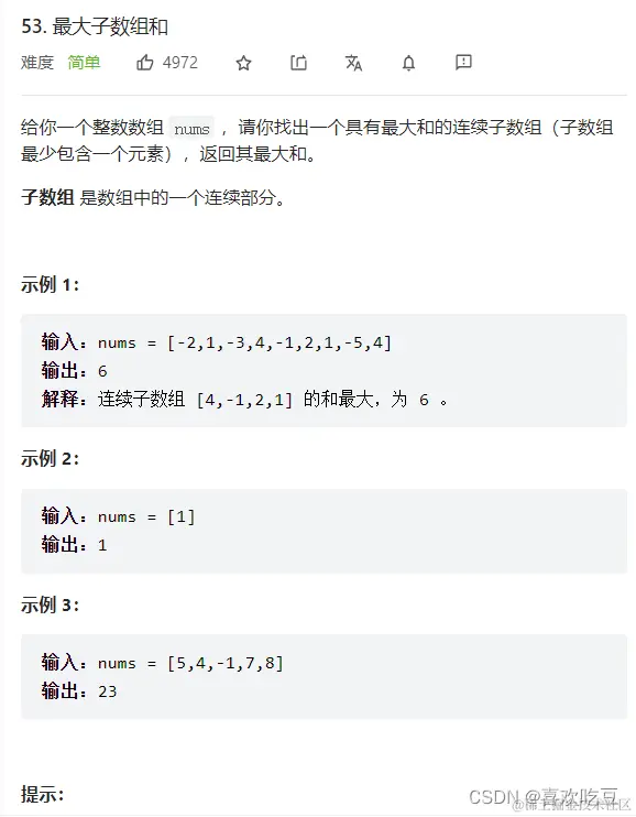 53. 最大子数组和 - 力扣(LeetCode)https://leetcode.cn/problems/maximum-subarray/