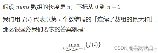 最大子序和 - 最大子数组和 - 力扣(LeetCode) 上述解答部分来自力扣官方解答。