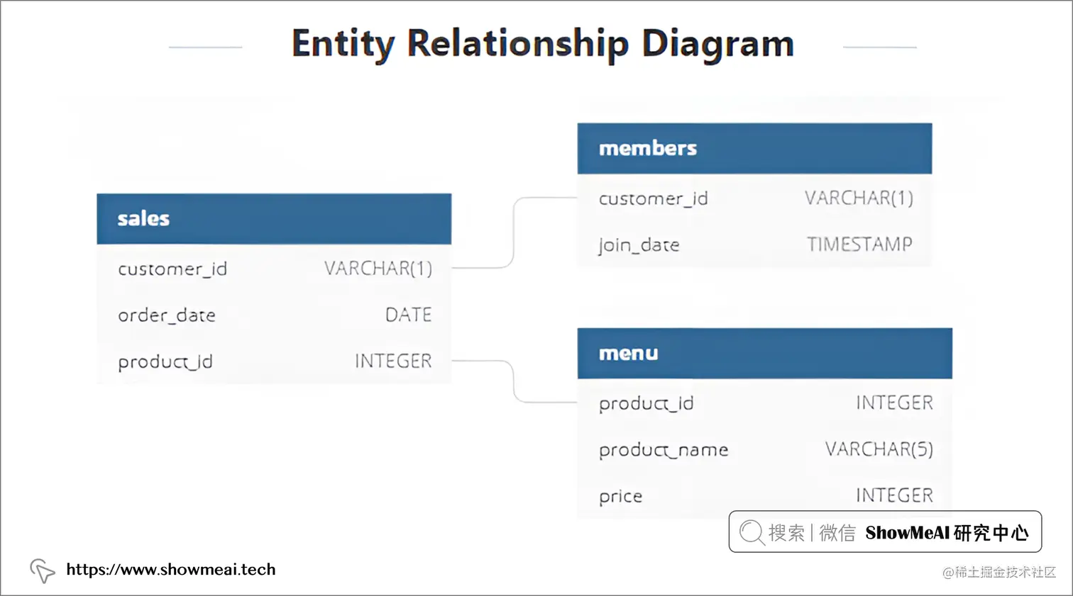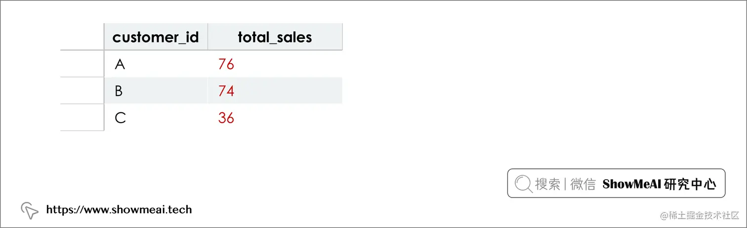 这里的信息显然来源于sales和menu两张表,我们先对它们进行关联,而问题中的『每位顾客』意味着我们会基于 customer_id 进行分组统计。最后的SQL如下所示: