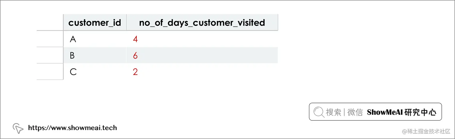我们知道,每位顾客每次光顾,都会生成 sales 中的相关记录,我们可以基customer_id统计客户访问餐厅的不同日期。