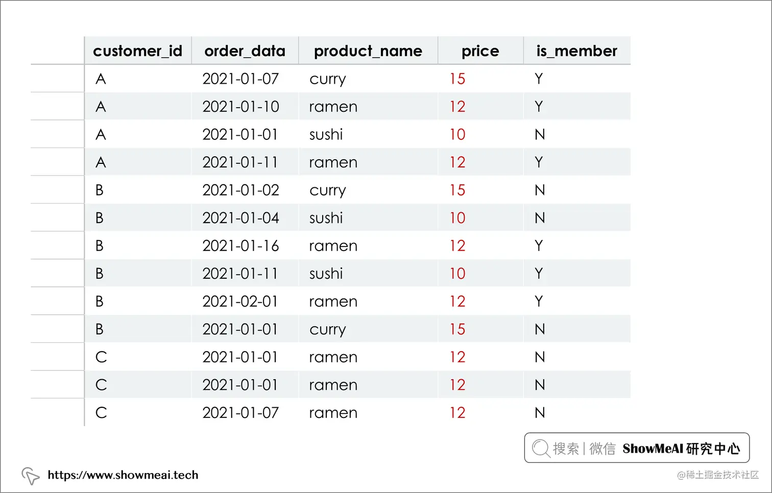 📌 11.构建新的宽表,包含这些字段信息:customer_id, order_date, product_name, price, member [Y/N]