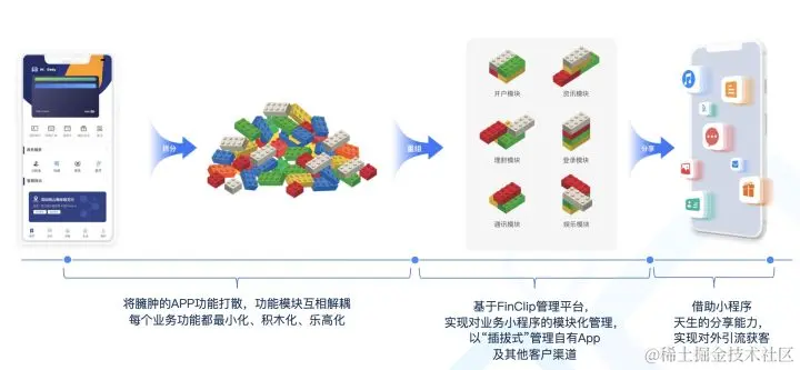 借助小程序容器技术将臃肿的 App 功能打散,功能模块互相解耦实现模块化开发,各业务模块间互不影响,通过管理后台即能实现动态更新与发布,极大的提升开发效率,降低开发成本。