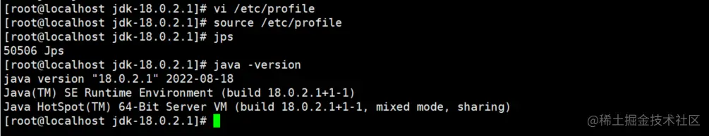 rpm -ivh jdk-18_linux-x64_bin.rpm\