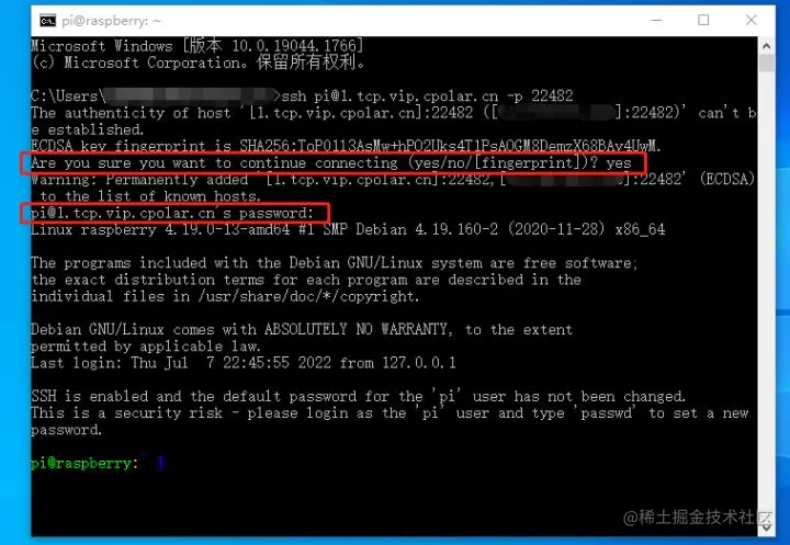 此时,我们就能使用固定的SSH隧道,访问到位于内网的树莓派。