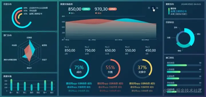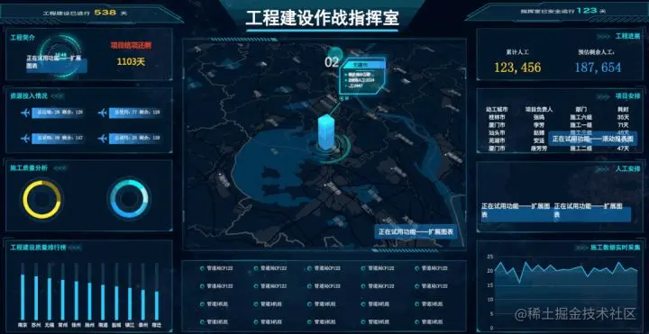 FineReport有专门的大屏动效图表,深色背景+荧光配色给你浸入式的大屏体验,“轮播”和“刷新”等动画形式满足你不同场景的业务需要,举两个例子: