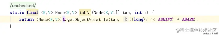 可以看到,这里是通过 tabAt 方法来获取元素,而 tableAt 方法实际上就是一个 CAS 操作: