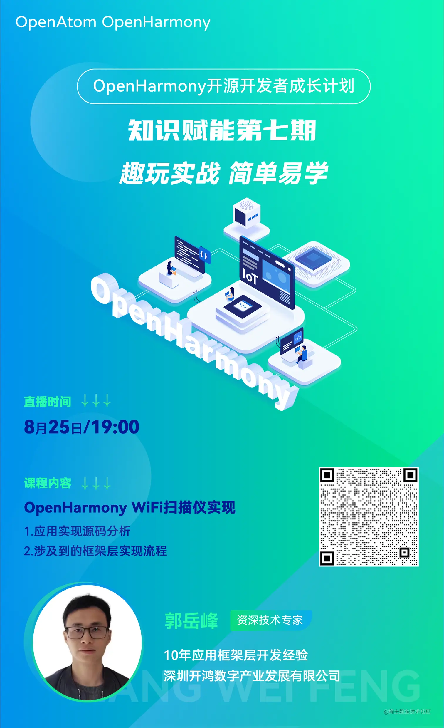 8月25日晚上19点,知识赋能第七期第三节直播 《OpenHarmony知识赋能-WiFi扫描仪实现》 ,在OpenHarmony开发者成长计划社群内成功举行。