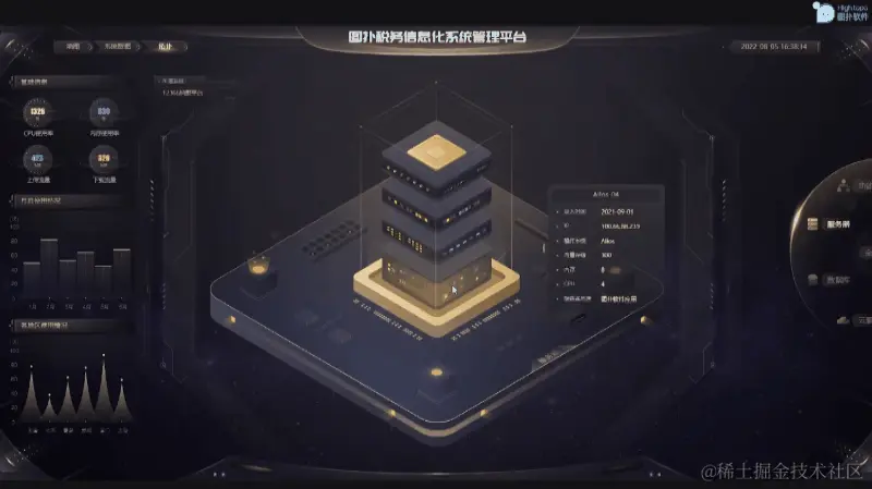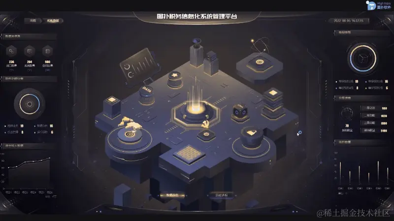 本案例采用暗金风格,呈现出低调、简洁和科技感,更适用于税务信息化行业的管理。