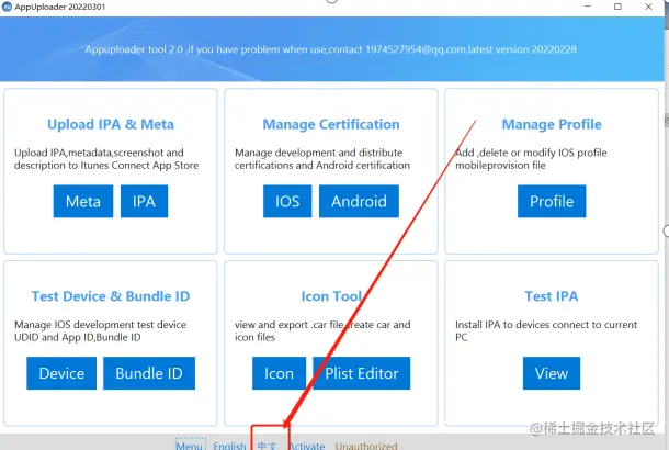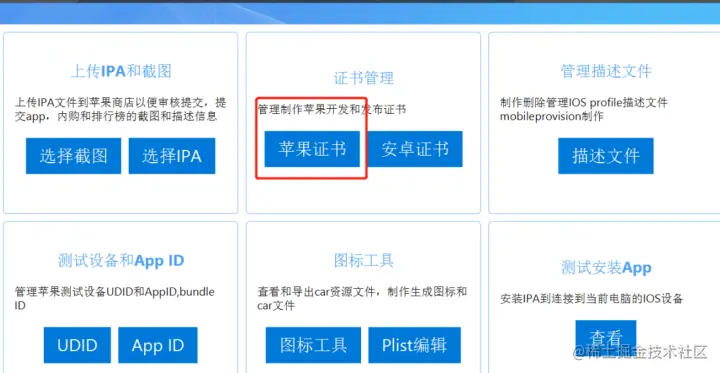 打开之前下载安装的app uploader软件,选择苹果证书,如图: