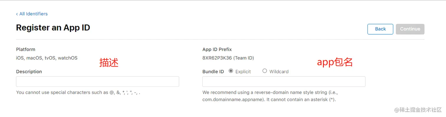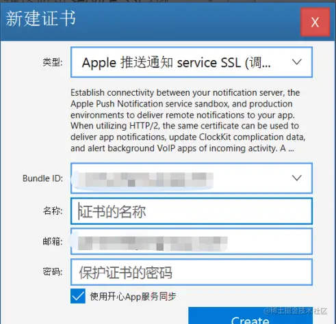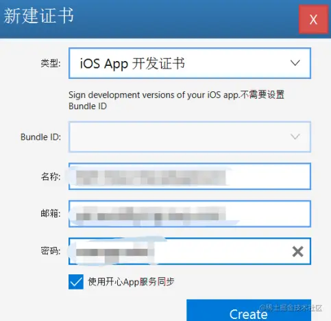 Bundle id即之前创建的app id,以下名称、邮箱、自定义。