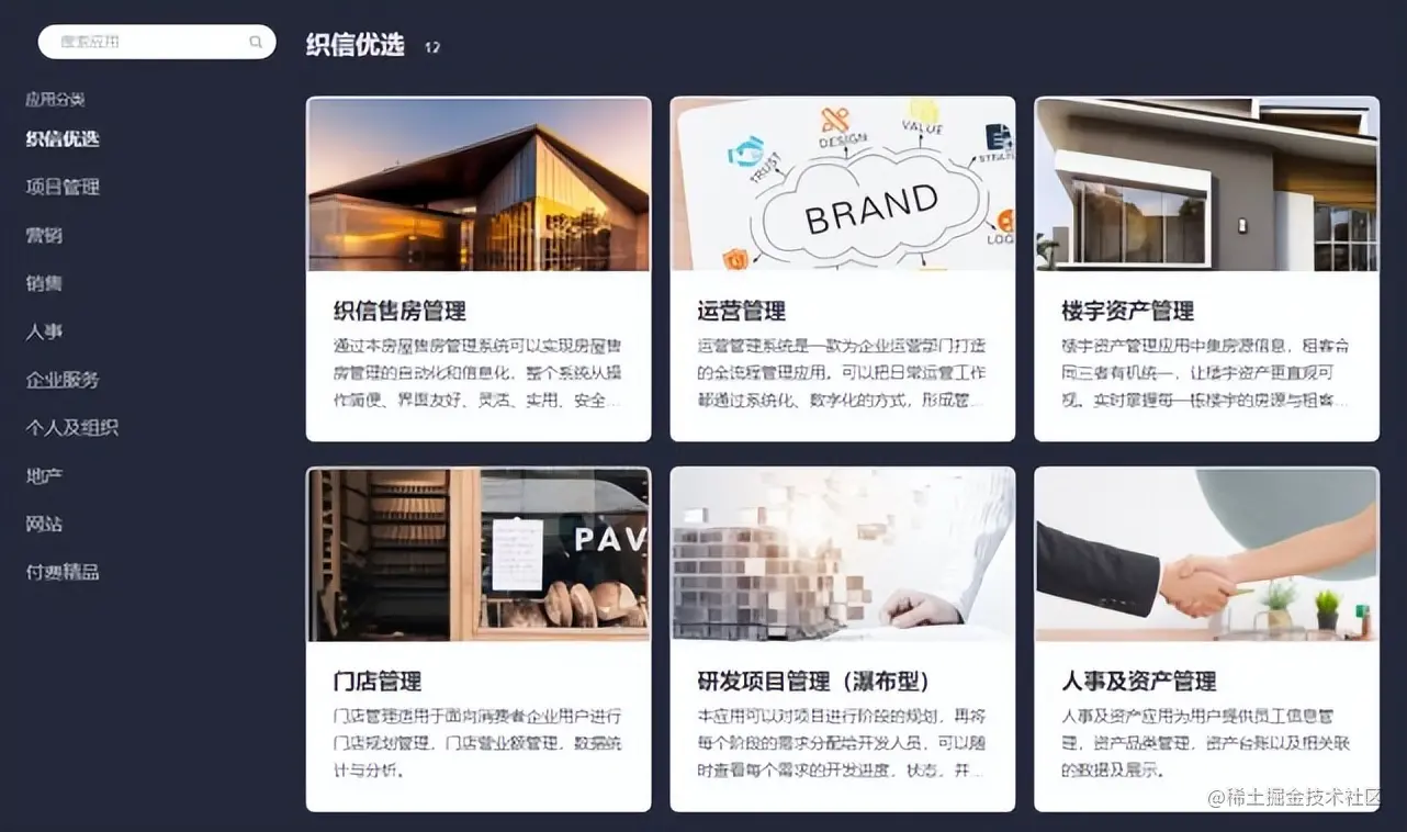 如果我们选择安装已有的应用模板,则能快速体验织信低代码平台的实现逻辑,这也相当于节省了前期搭建的准备工作,直接步入使用阶段。