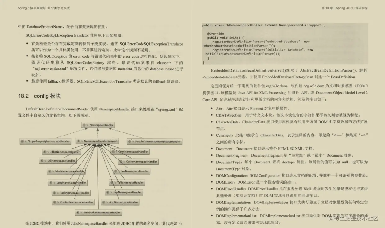 最近小编找了一份比较NB的PDF,秉承着分享的好习惯,在此分享给大家。本PDF围绕 Spring Framework 5.x 版本展开,**通过源码剖析带你重点理解 Spring IoC 容器,事件 Event, 资源 Resources,国际化 i18n,数据验证 Validation, 数据绑定 Data Binding, 类型转换 Type Conversion,SpEL,AOP 等核心知识原理,了解 Spring 5 的新特性,还给出了关于Spring 面试的重点指导。**语言风趣,引用了大量实例,让源码剖析不再枯燥+XXX_WWW666666更添趣味。下面一起来看看目录!