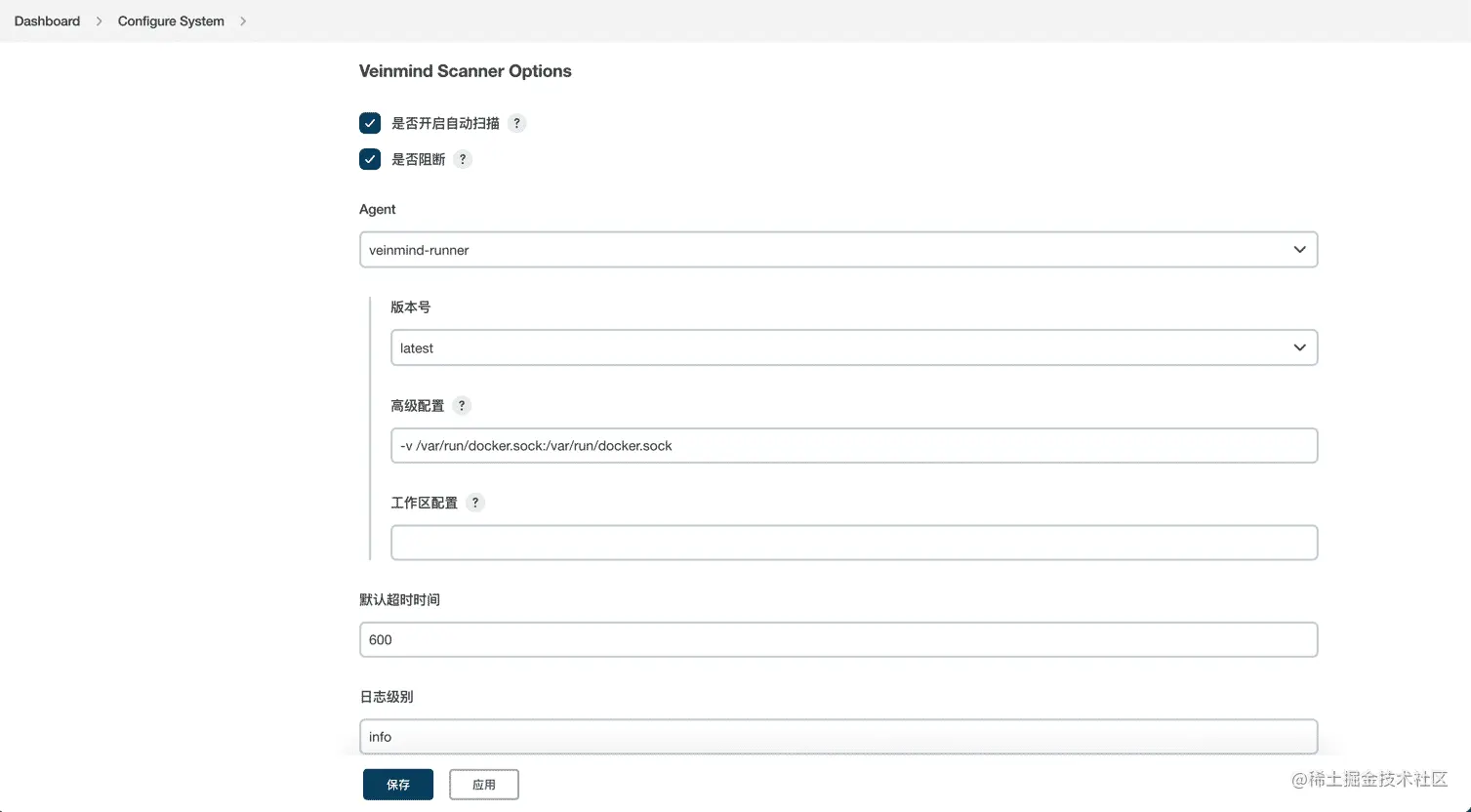 安装好插件后,在 Manage Jenkins -> Configure System 找到Veinmind Scanner Options