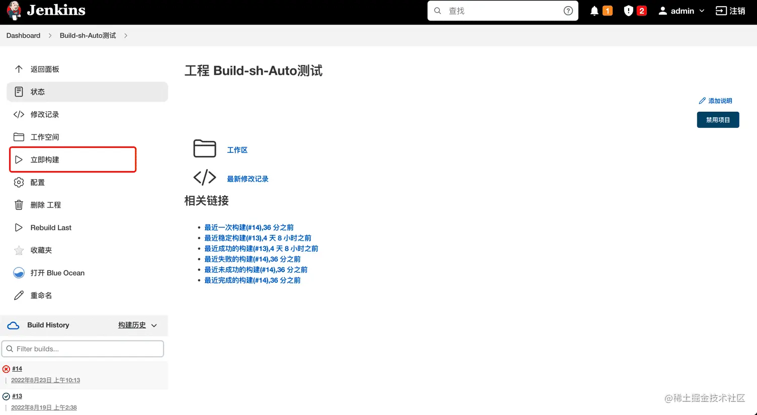 任意找一个Step存在构建的Project,点击立即构建触发流程。