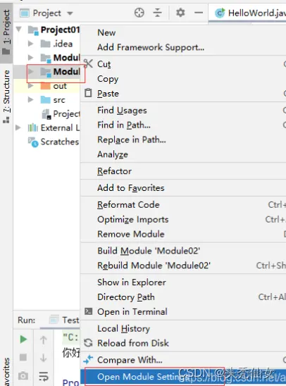 在project01下创建一到多个Module,project01右键new—>Module,然后点击next。输入名字后点击finish