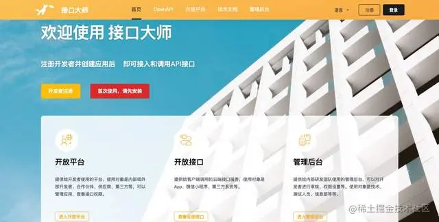 开发者可以在开放平台,进行自主注册和登录,以及查看自己的API接口。