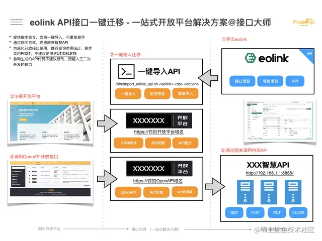 如果原来是使用Eolink维护内部接口文档的,可以使用脚本命令方式进行批量导入、和增量迁移。可以批量迁移几百个甚至上千个API接口。迁移方案是: