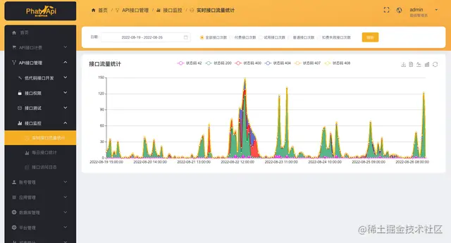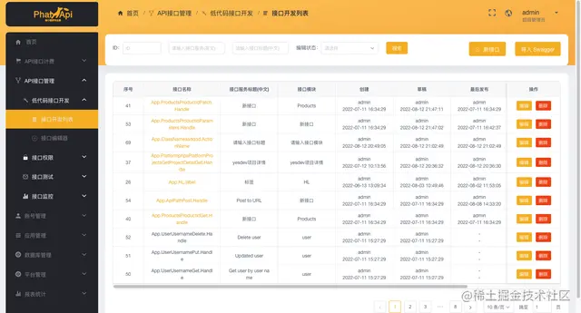 API接口导入后,即可在Admin管理后台进行API接口资产的管理,包括但不限于:接口权限分配、接口请求日记、接口监控、接口流量统计、接口套餐配置、接口测试。