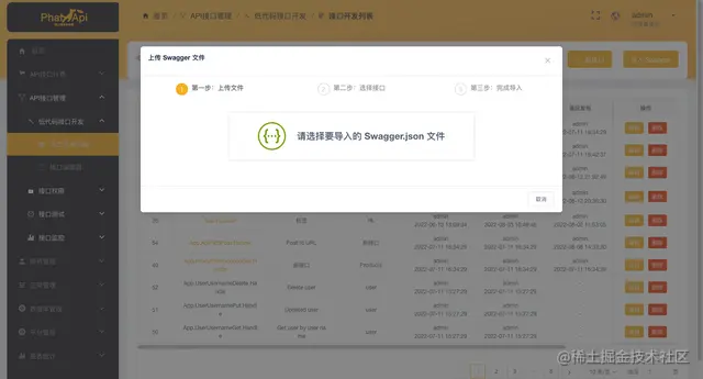 如果原来是使用Swagger维护接口文档的,如果需要变成开放接口,可以进入Admin管理后台,进行在线导入。