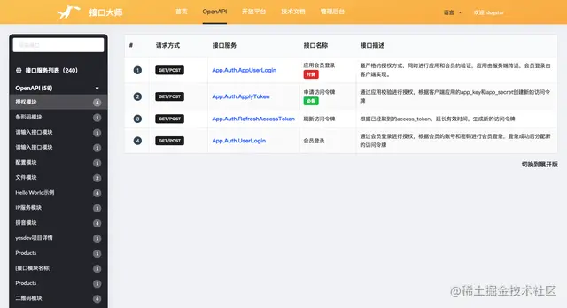 简而言之,接口大师是一套快速研发、管理和开放API接口的软件产品、源代码和解决方案。除了有源代码,还有开发文档,以及完善的产品软件系统。