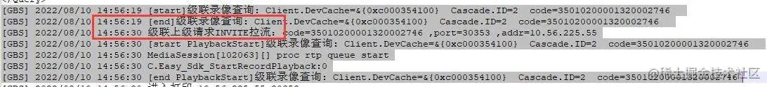 打开日志发现,从开始查询录像到发送指令播放,中间间隔有11秒,如下图所示: