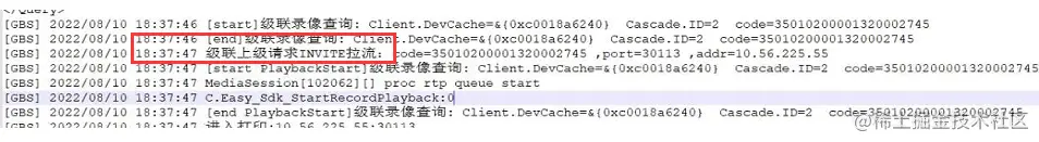 从录像查询成功到播放录像,这中间间隔有11秒,我们判断是上级EasyGBS往下级EasyGBS发送指令有异常。