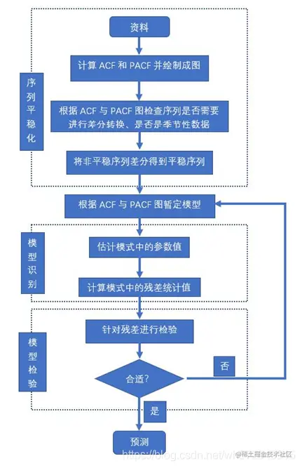 AR:自回归。一种模型,它使用观察与一些滞后观察之间的依赖关系。使用原始观察的差分(例如,从前一时间步骤的观察中减去观察值)以使时间序列静止。