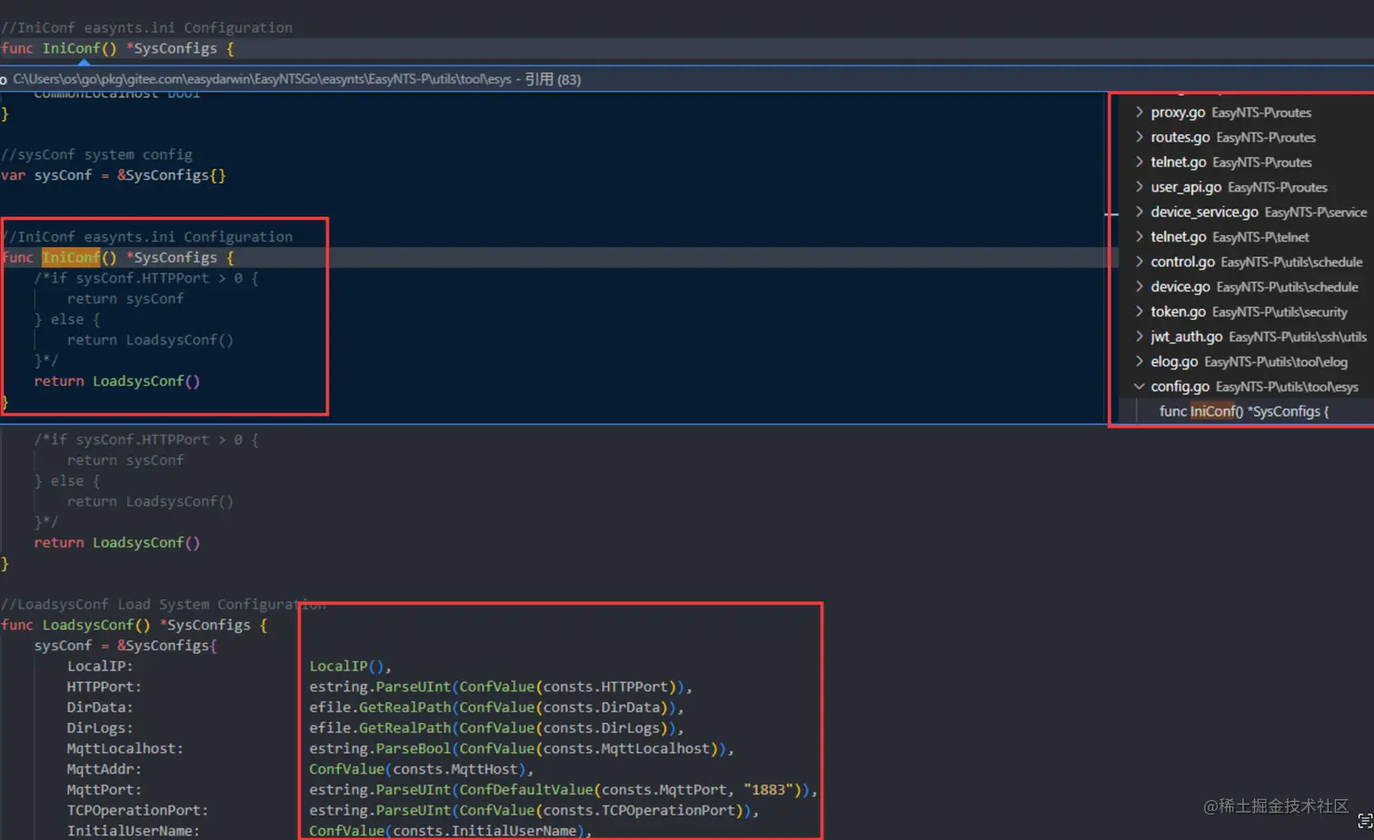 在加载配置中,右侧调用可以看到有非常多的调用,每次调用都要重新加载配置。因为返回的是指针,会逃逸到堆上,直到垃圾回收才清理。