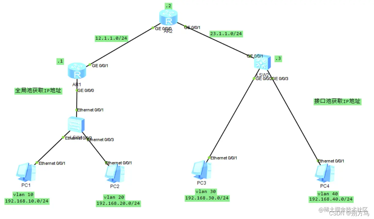 注:该拓扑使用了DHCP-VLAN间通信-OSPF综合实验的拓扑,且以该实验配置结果为原配置。