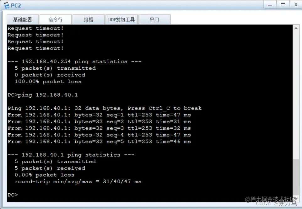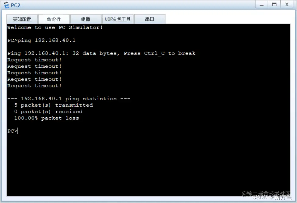 其他Vlan中的PC无法ping通PC4(Vlan 40)(以PC2为例):