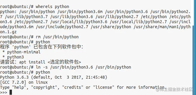 在没配置之前,我的Ubuntu中安装了python2.7和python3.6。而且输入python默认使用的是python2.7