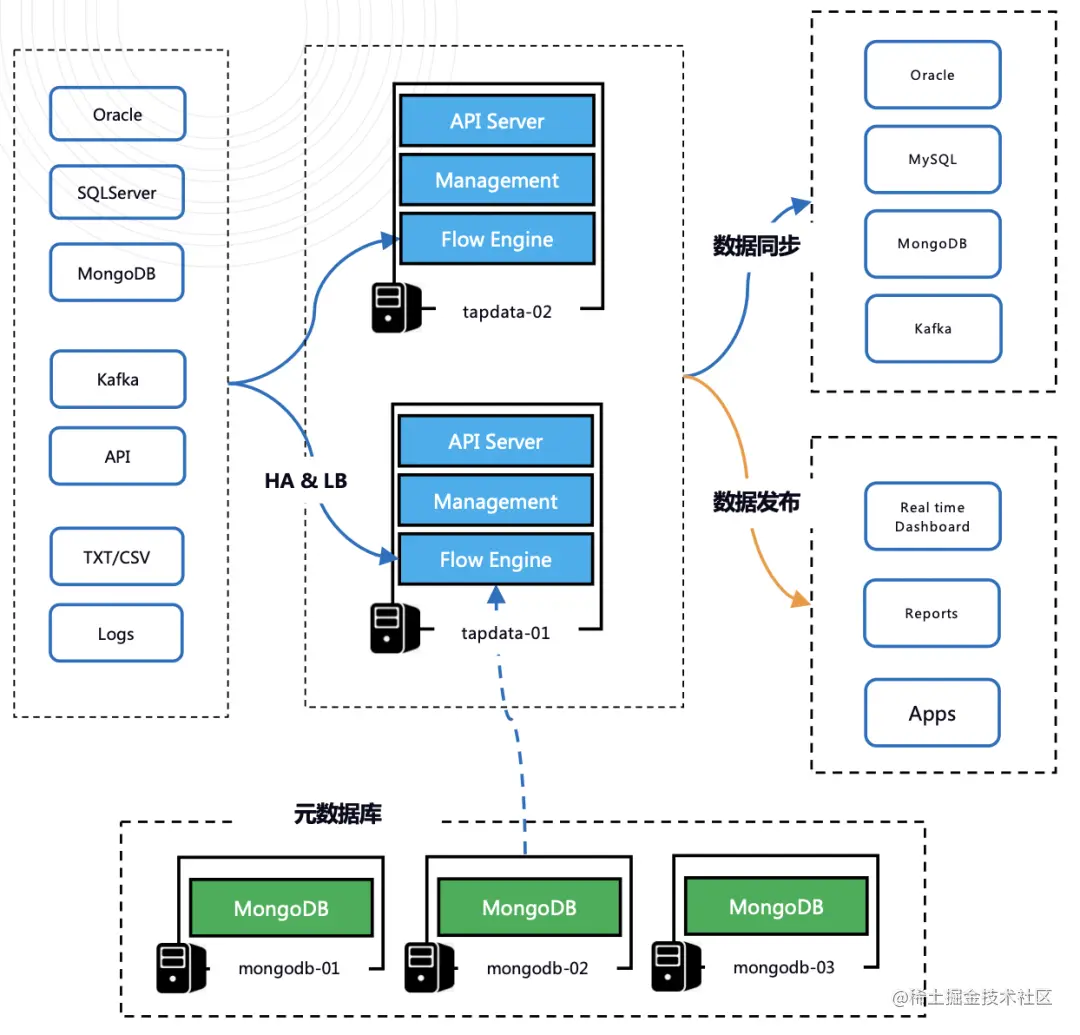 Tapdata Flow Engine:负责数据同步、清洗、多表关联、聚合计算等。