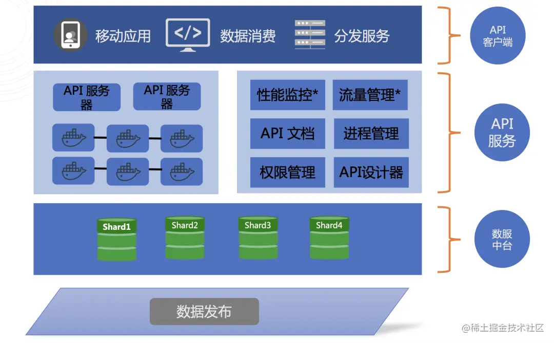 支持将各库各表的数据以 API 的形式发布,并作为一种资源供不同的业务方调用,在统一数据接入层的同时,也大大降低了运维的压力和工作负载。