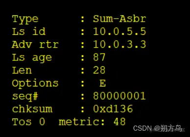 三类LSA正是由区域边界路由器发出的,三类LSA只有路由信息,没有拓扑信息,用于描述域间路由。注意,一个网段生成一条 LSA,发给相邻的区域的路由器。其通告范围是区域间。