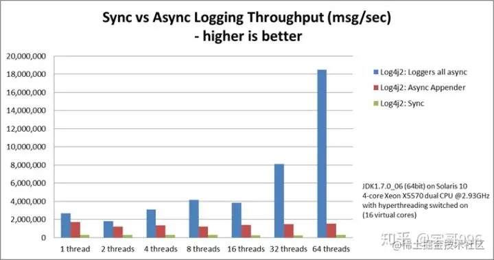 Log4j 2包含基于LMAX Disruptor库的下一代异步记录器。Disrupter是一个开源的并发框架,能够在无锁的情况下实现线程安全高效的并发操作,关于Disrupter框架的原理与使用,会在之后的高并发框架专栏详细剖析。在多线程方案中,与Log4j 1.x和Logback相比,异步Logger的吞吐量高18倍,延迟降低了几个数量级。否则,Log4j 2明显优于Log4j 1.x,Logback和java.util.logging,尤其是在多线程应用程序中。