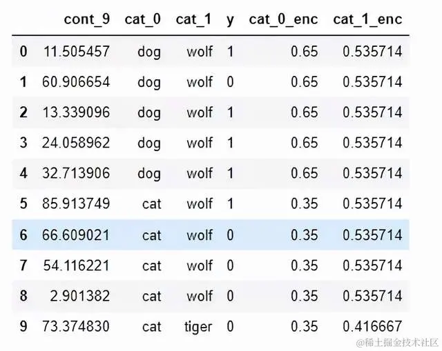 与其为“dog”和“cat”创建虚拟变量,我们更愿意将其更改为一个数字。我们可以用0表示猫,1表示狗。然而,我们可以编码更多的信息。简单的0或1也只适用于一种动物。考虑猫和狗的平均目标值是多少。