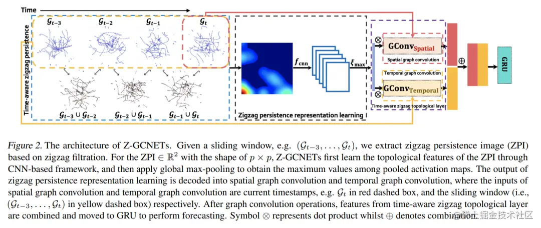 Zigzag持久性提供了一个系统的、数学上严格的框架,用于跟踪观测到的数据的最重要的拓扑特征,这些特征往往会随着时间的推移而显示出来。将提取的具有时间条件的拓扑描述子集成到深度映射中,开发了一种新的拓扑摘要、锯齿状持久图像,并得到了其理论上的稳定性保证。在流量预测和以太坊区块链价格预测的应用中,我们验证了带有时间感知之字形拓扑层(Z-GCNETs)的新GCNs。结果表明,Z-GCNET在4个时间序列数据集上的性能优于13种最新的方法。